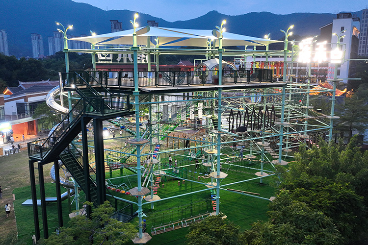 寧波滕頭5號空間站綜合探險水晶塔是一座集探險拓展與團建運動于一體的無動力游樂設備。以“青春活力的現代拓展休閑娛樂”為設計理念。它的存在,不僅豐富了當地的文娛內容,還為游客帶來了休閑娛樂拓展運動的好去處。
